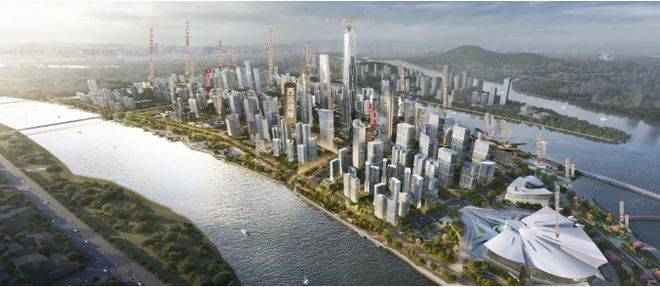 在约2.91万平方米的土地上,项目规划了7栋高端住宅及2栋类住宅公寓,共计996户高端住宅。其建筑本身即成为金融岛的城市名片:前排建筑高度约80米,后排更是达到了约150米,这刷新了明珠湾起步区住宅的天际线。更高的海拔,不仅是为了塑造震撼的城市轮廓,更是为了将约460米宽的三江交汇胜景、蜿蜒的环岛绿道、现代的城市风貌尽收眼底。约30%的绿化率,转化为精心打造的“一环两轴四园六仪十三景”度假式水岸园林。这种“以高度致敬稀缺,以园林礼遇自然”的规划,旨在打造金融岛上的立体景观珍藏馆。